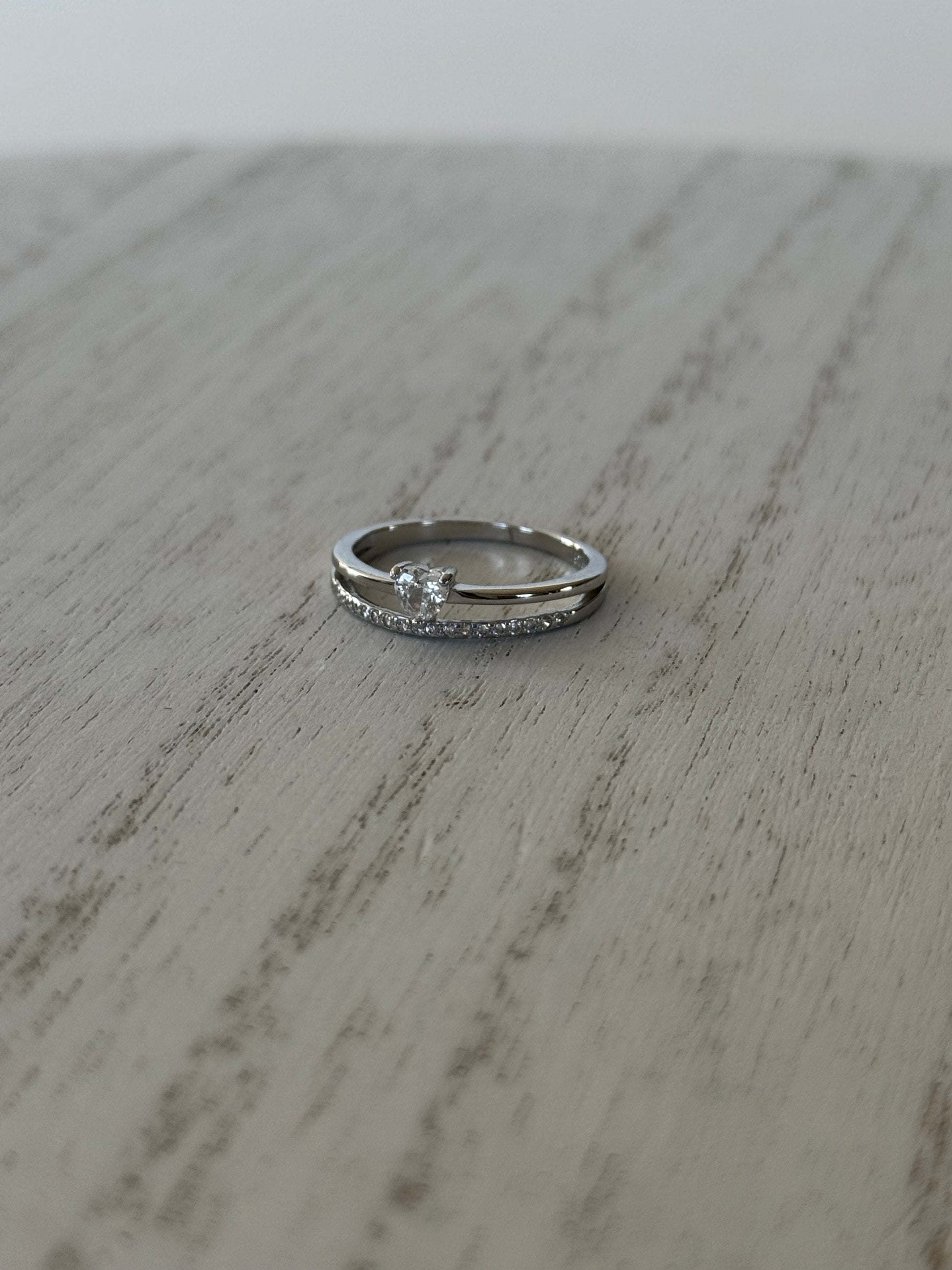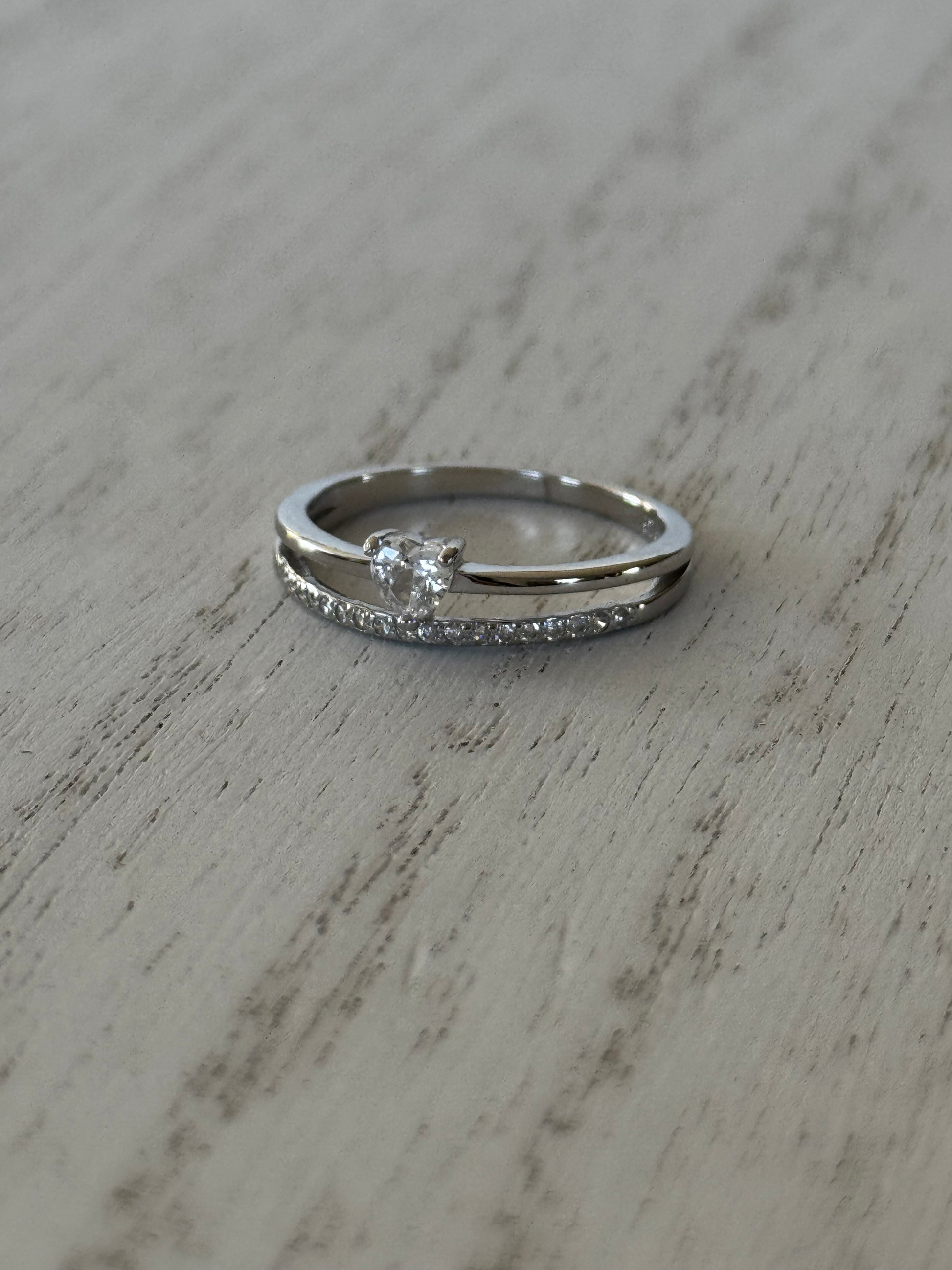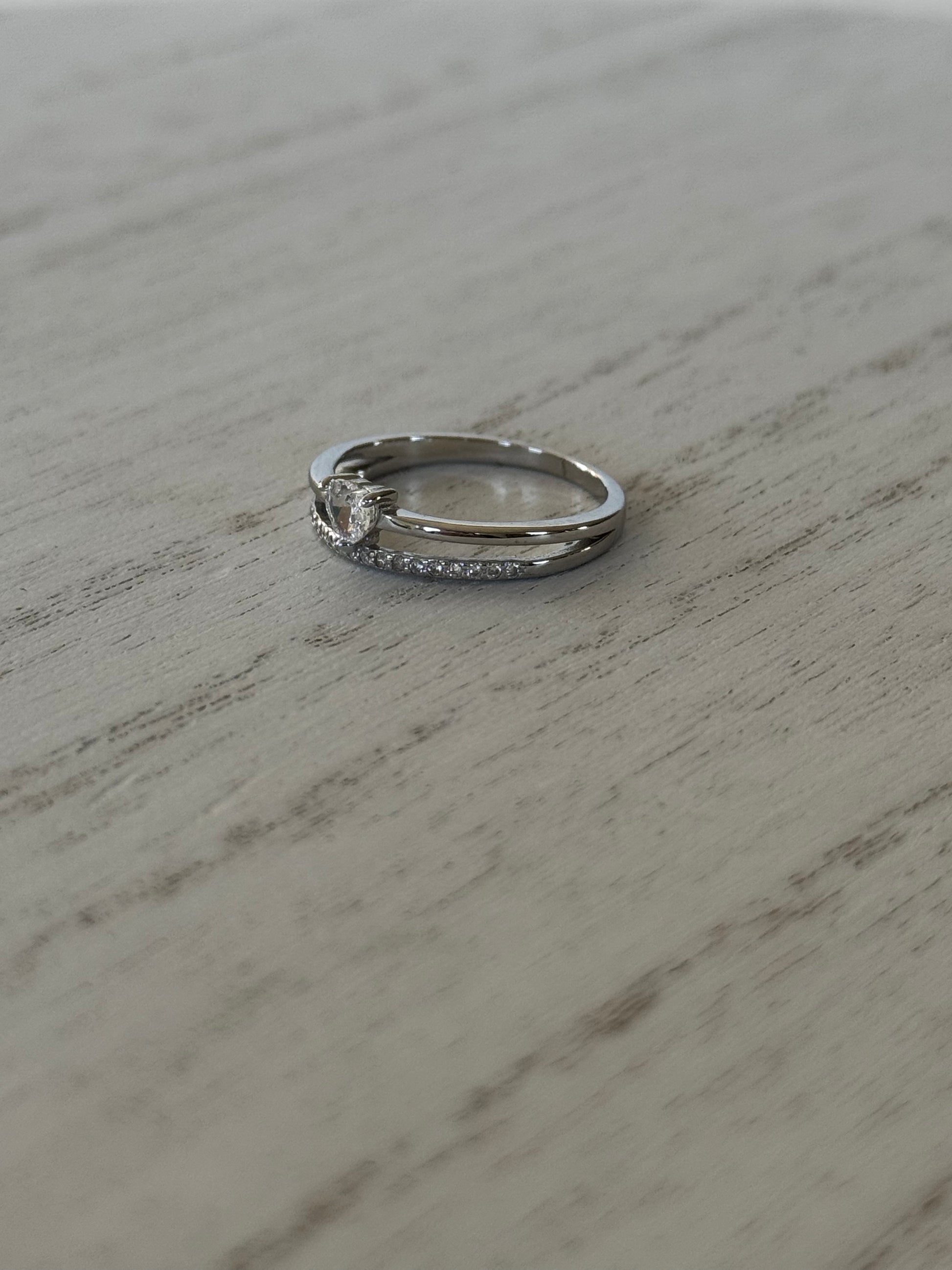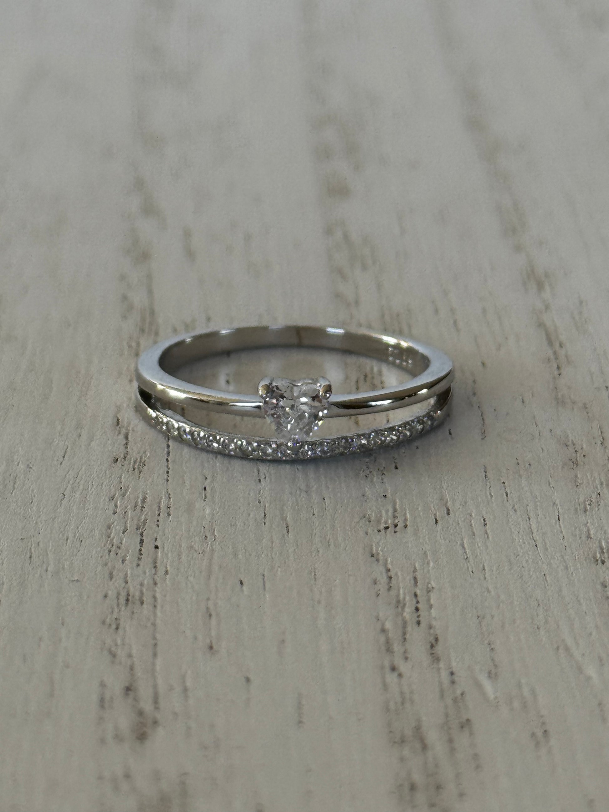 Crafted for those who love subtle distinction, the ring at the top displays a cute little heart, while the ring at the button is a classic zircon round ring. Perfect for the illusion of stacking or just pure pleasure of having multiple shinning masterpieces.