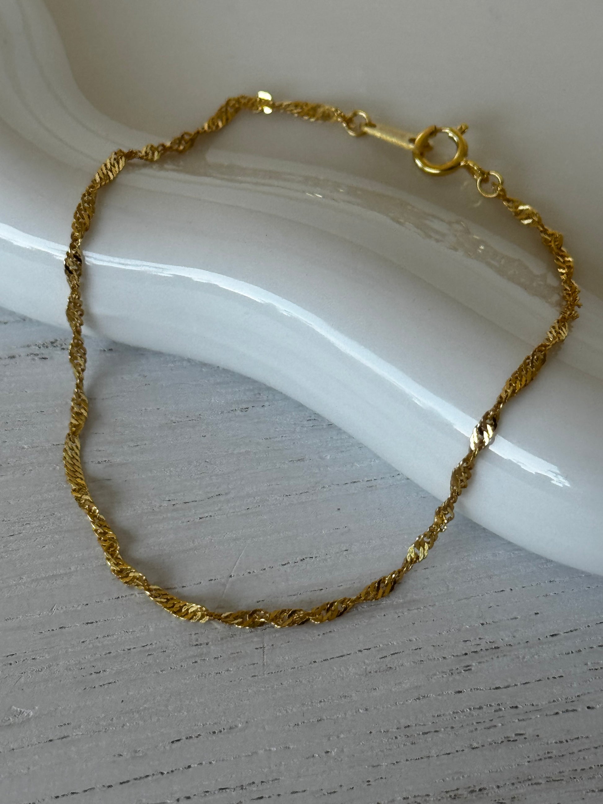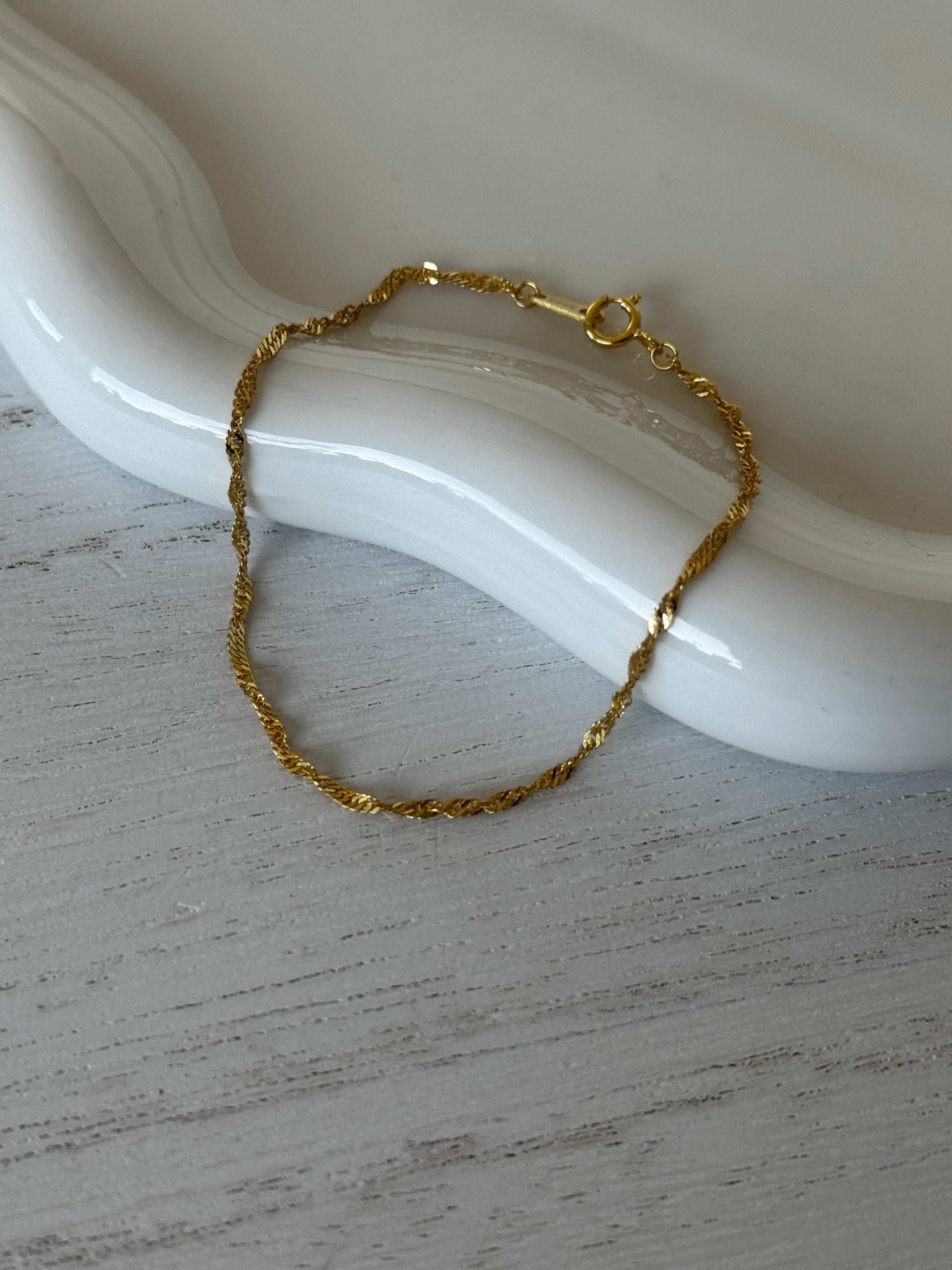 A delicate bracelet that shimmers with a timeless elegance, this twisted gold link bracelet is an essential for every jewelry collection.