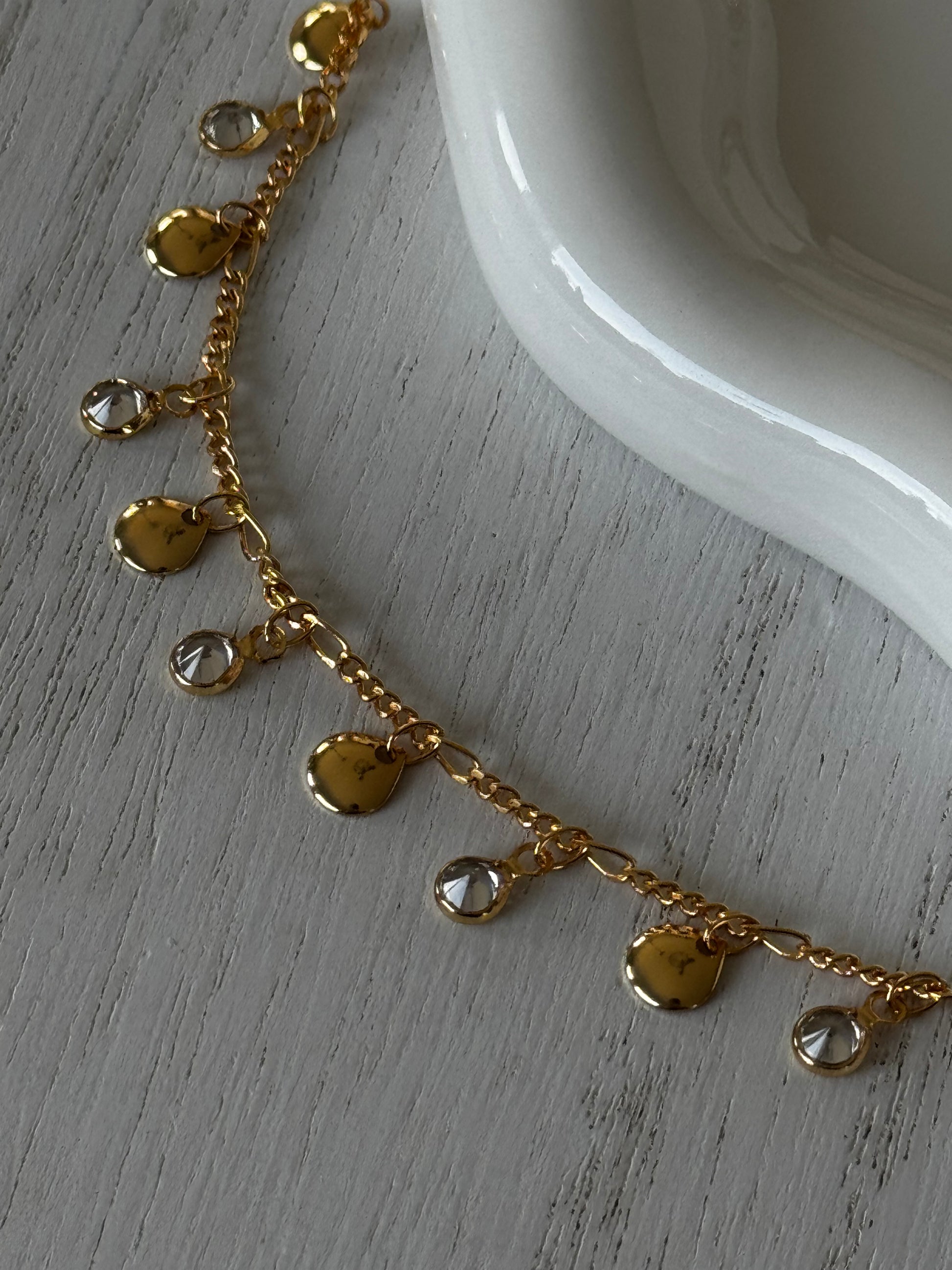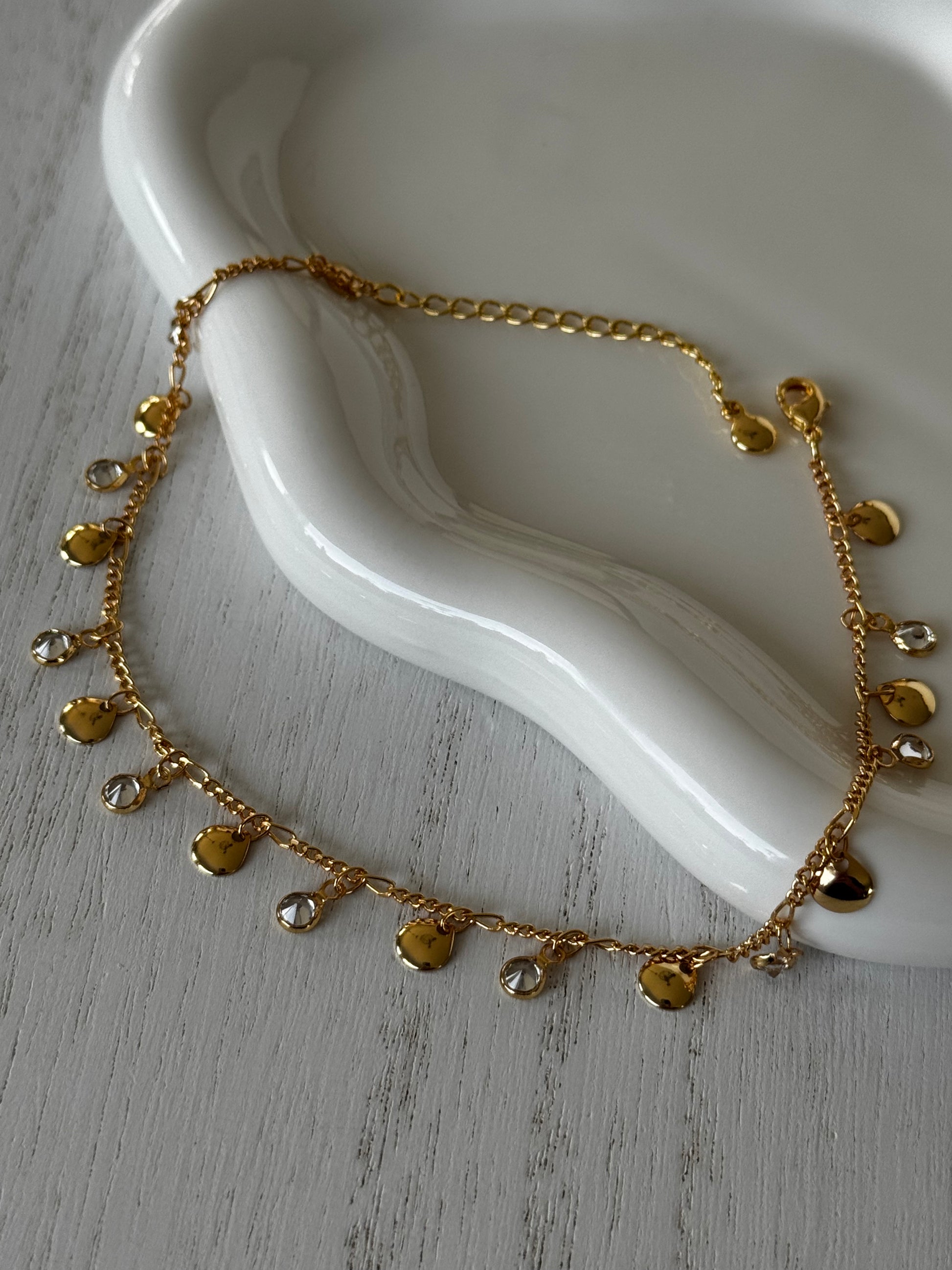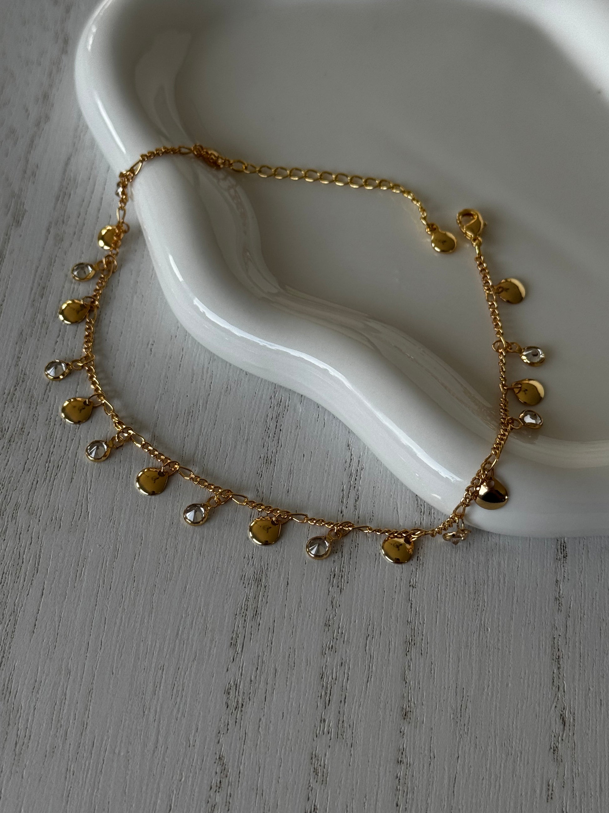 Delicate and refined, this anklet features a graceful water drop tassel pendant adorned with sparkling zircon accents. Plated in radiant gold, it captures the light with every step, adding an elegant touch of shimmer to your style. Perfect for both everyday wear and special occasions.