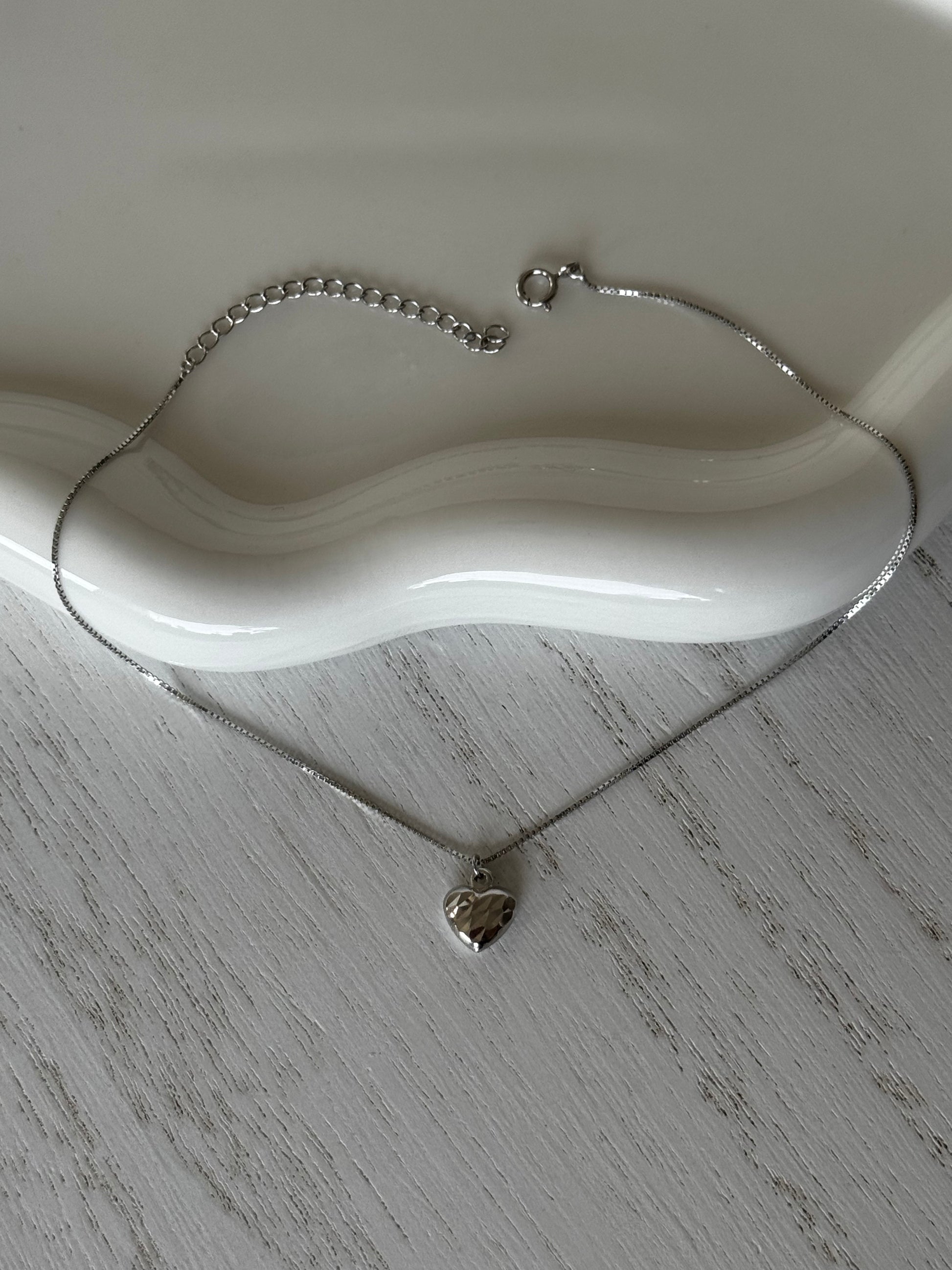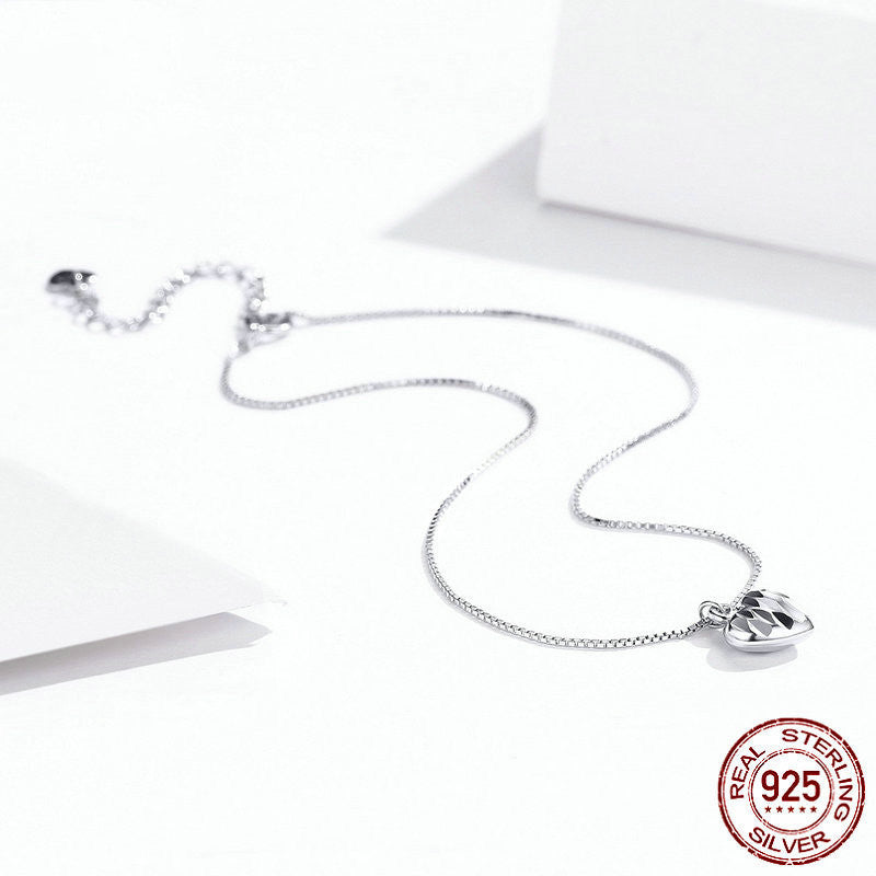 Crafted in 925 sterling silver, this elegant anklet features a heart-shaped pendant with a uniquely detailed design, delicately encrusted for a touch of brilliance. A timeless piece that adds grace and charm to every step.