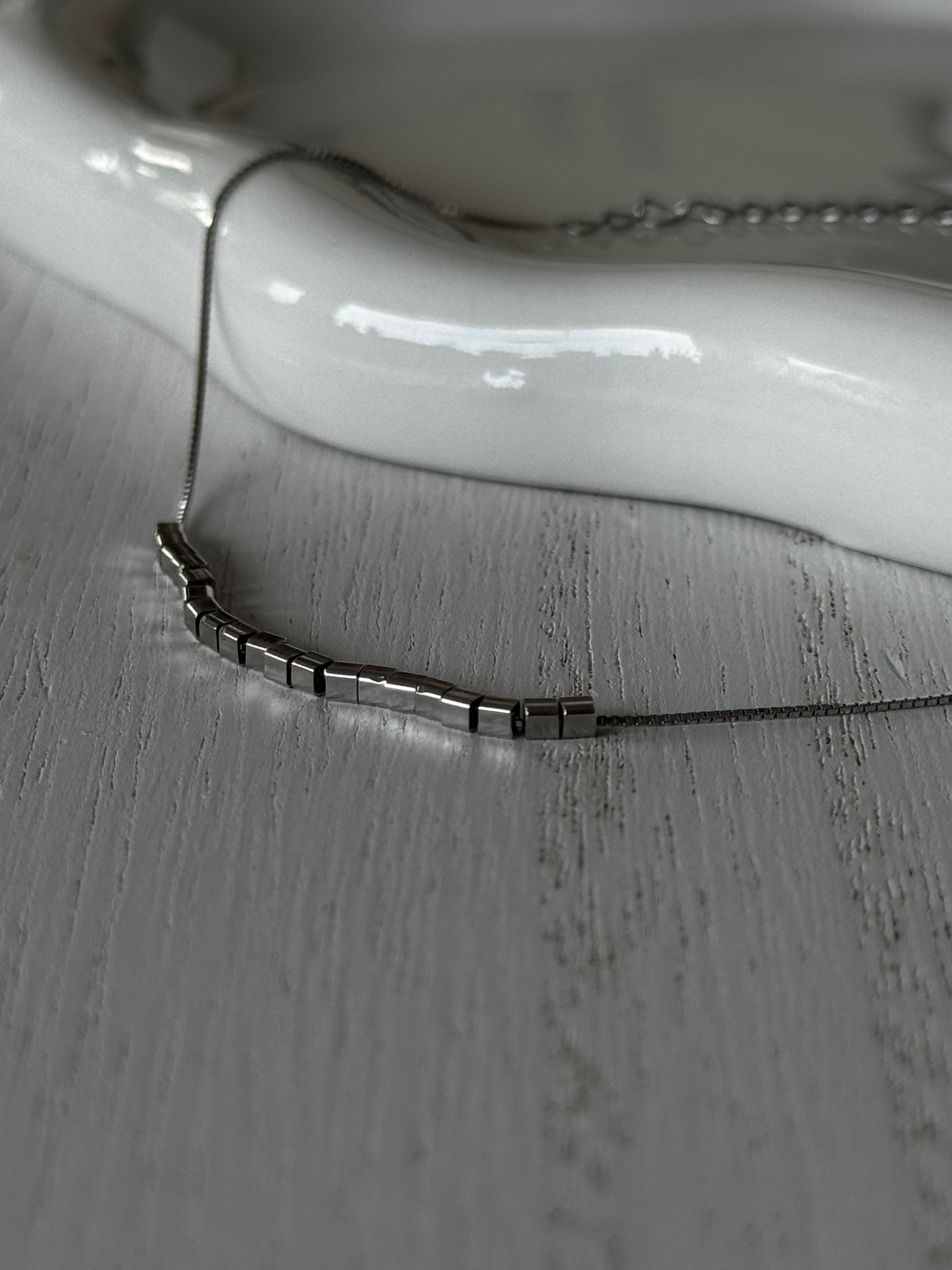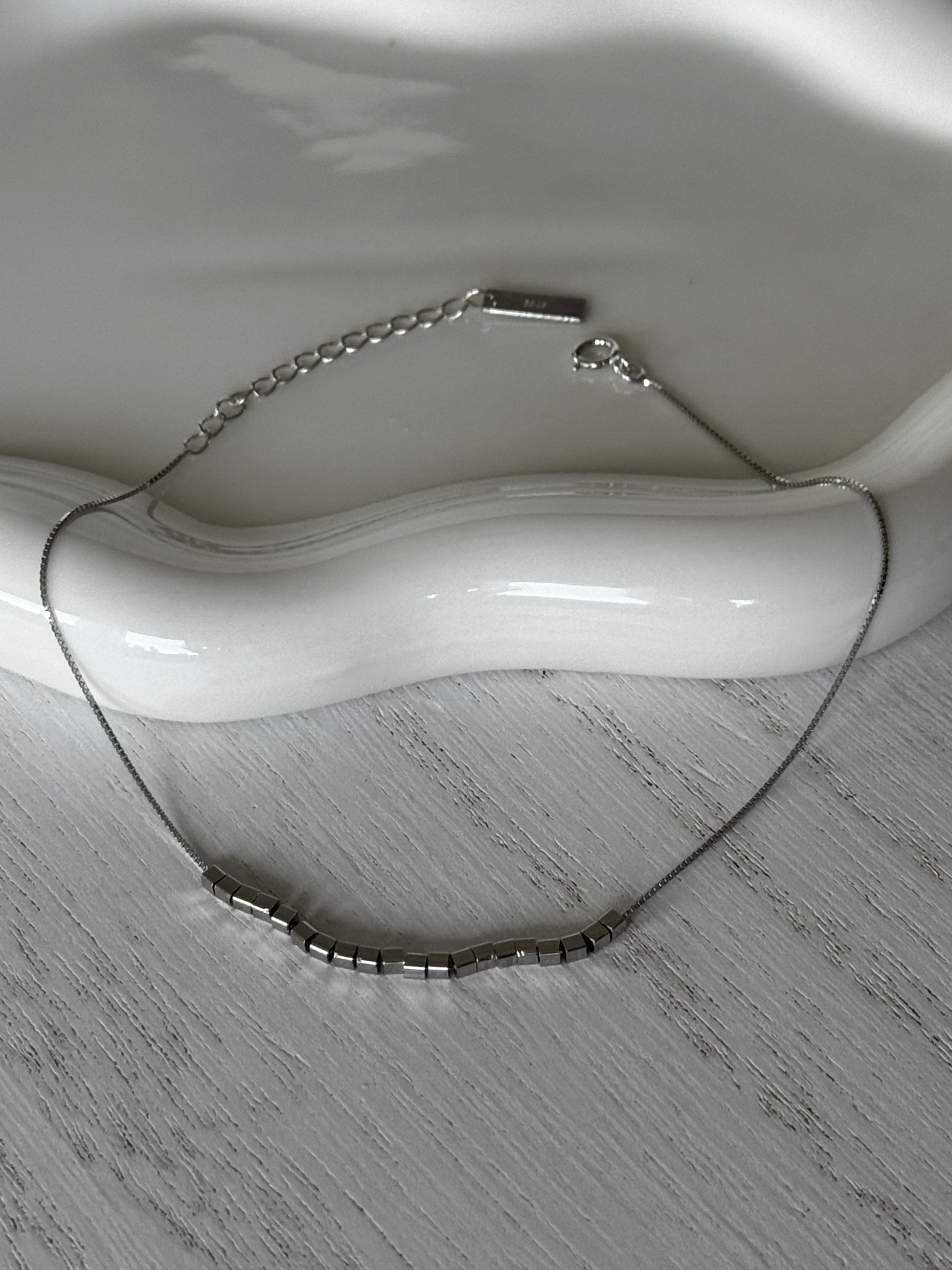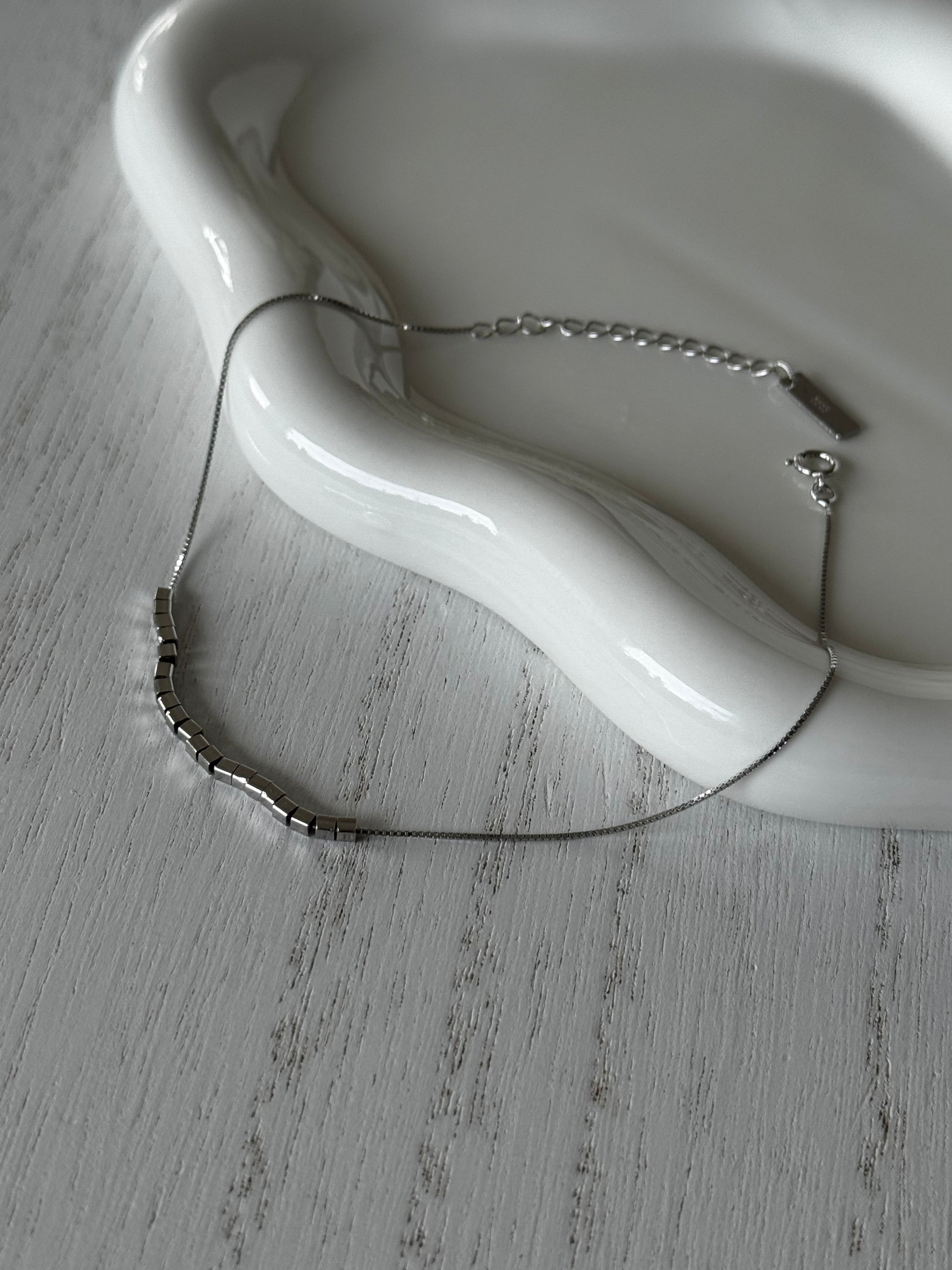 Minimal yet stylish, this anklet is crafted in 925 sterling silver and features a delicate chain accented with small square charms. A subtle statement piece that adds a modern touch to any look.