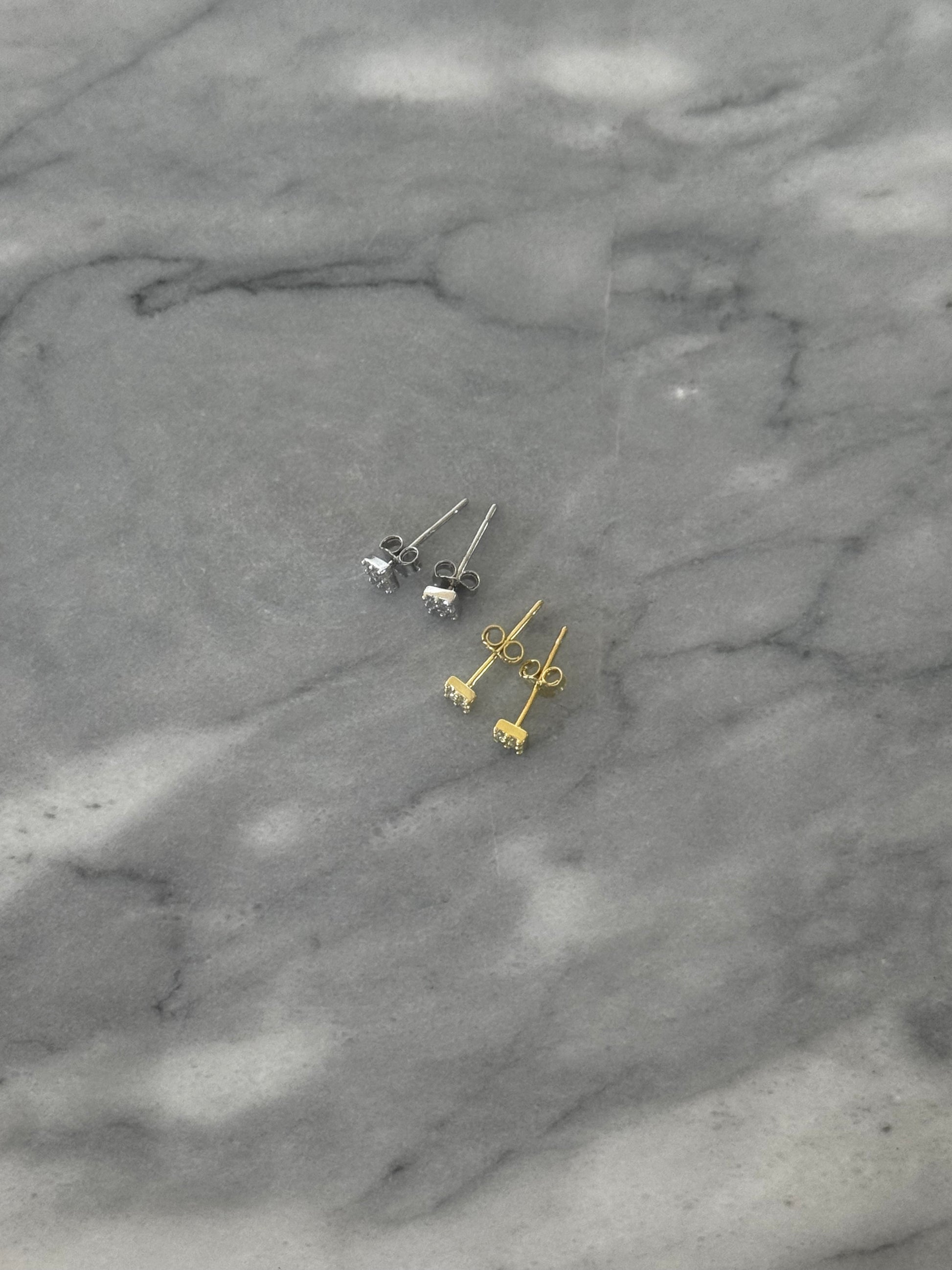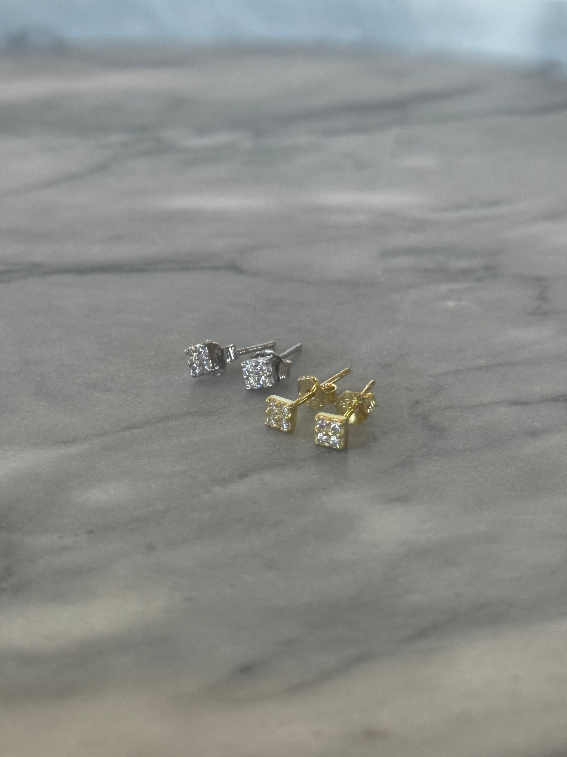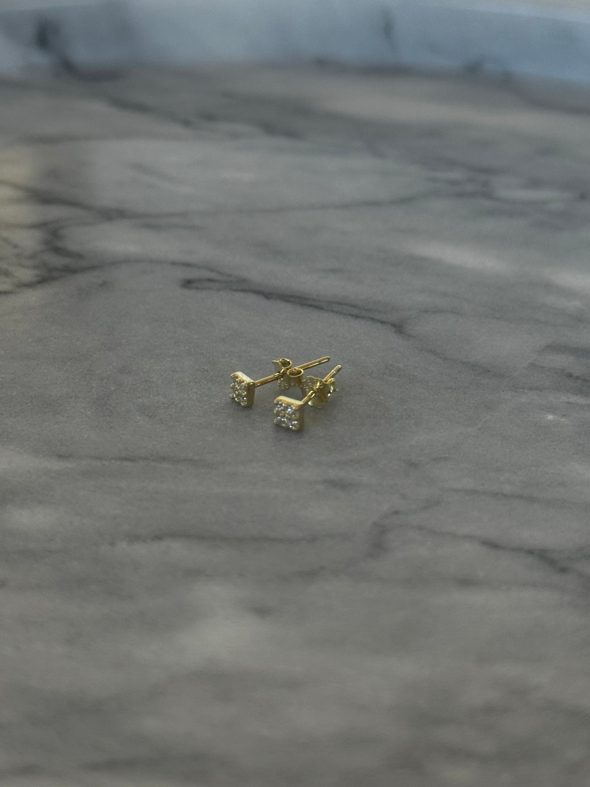 Adding a touch of sparkle to your every day with Izzy, a charming blend of dainty design and delicate brilliance. Each petite stud features a square accented with tiny shimmeting zircons that catch the light just so.