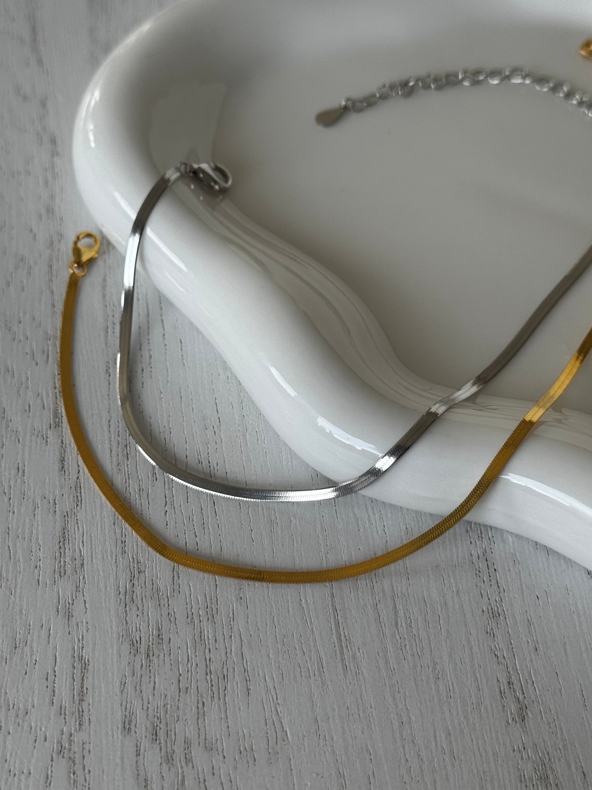 Refined and timeless, this flat snake chain anklet is crafted from high-quality 925 sterling silver and available in your choice of radiant gold or sleek silver. Its smooth, fluid design shines effortlessly, making it the perfect touch of elegance for both everyday wear and special occasions.