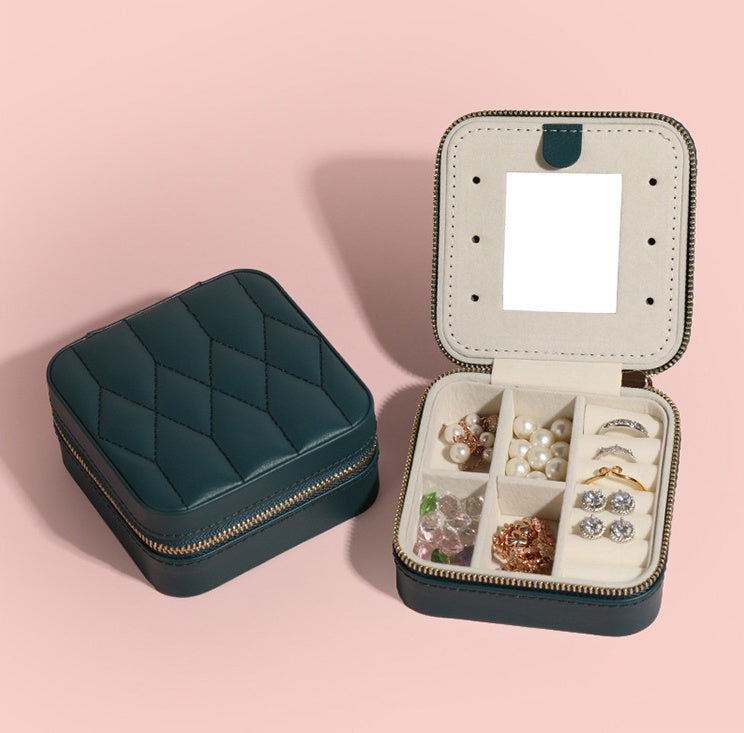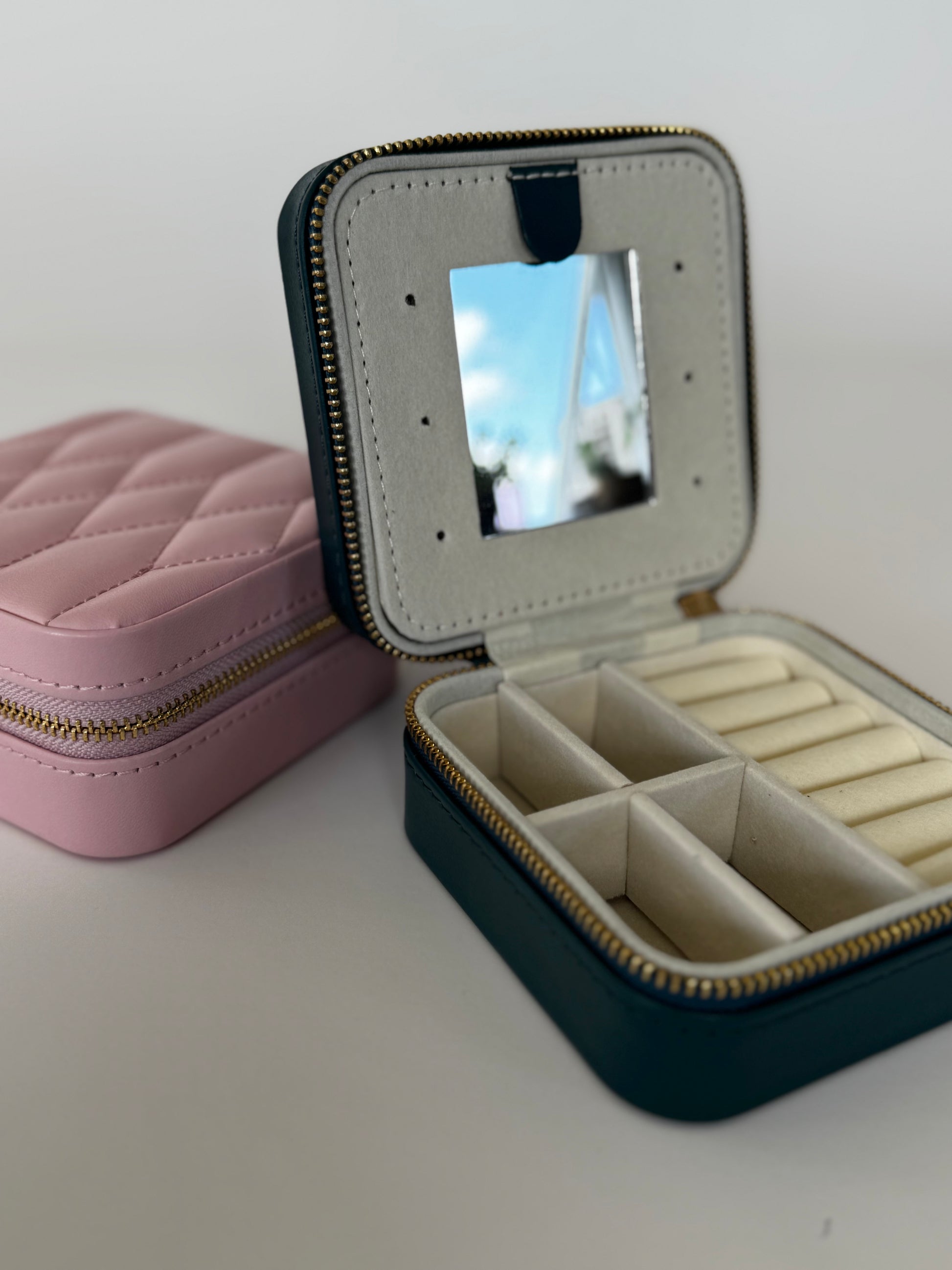 Super cute, square little jewelry box available in 3 colors, pink, green and black.
