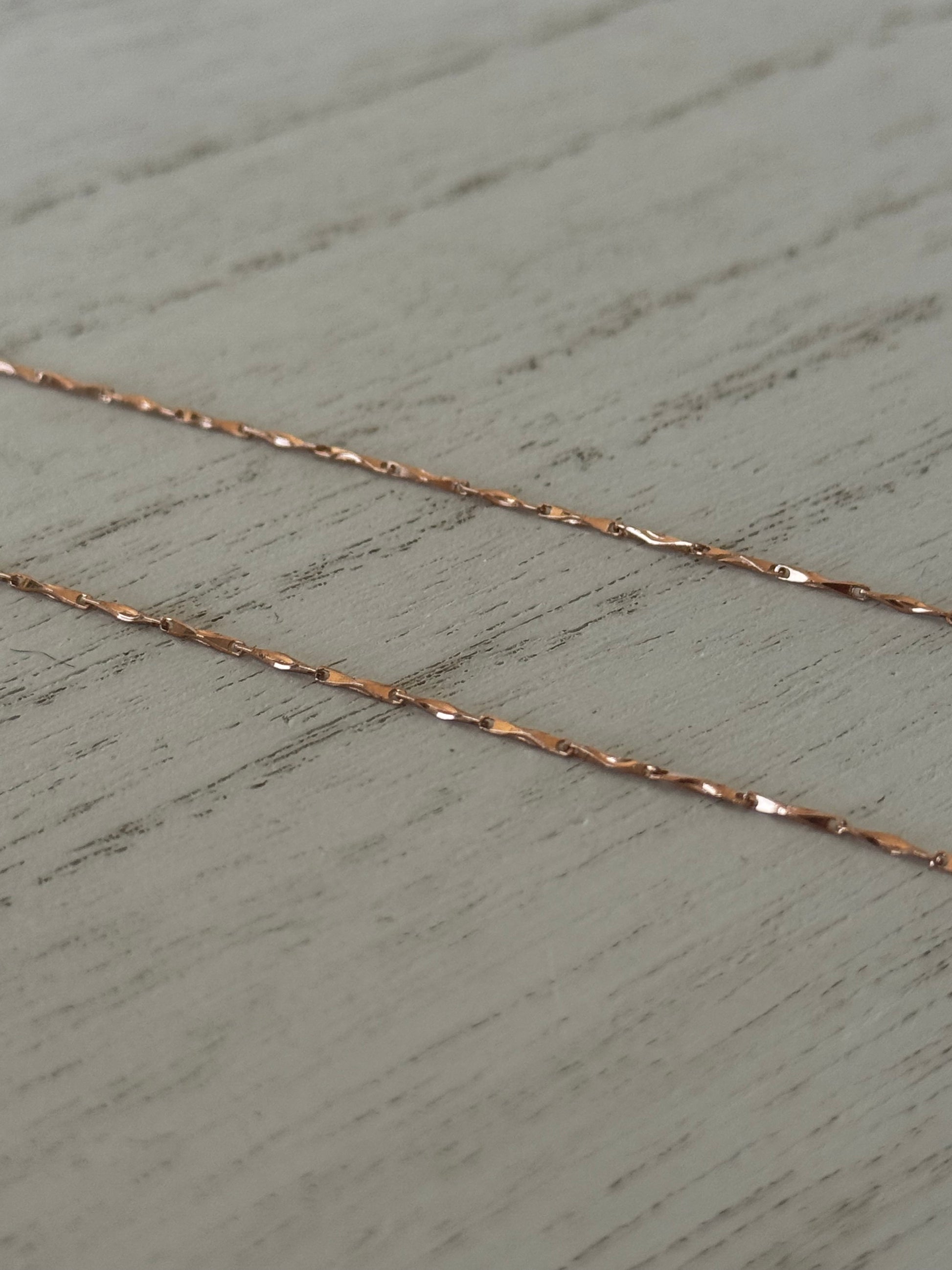 These rose gold chains add the perfect touch of shimmer to any look. They are available in multiple styles, so you can mix and match, and layer to your heart's content. Wear it solo for a minimalist look or stack it with your favorites pieces.