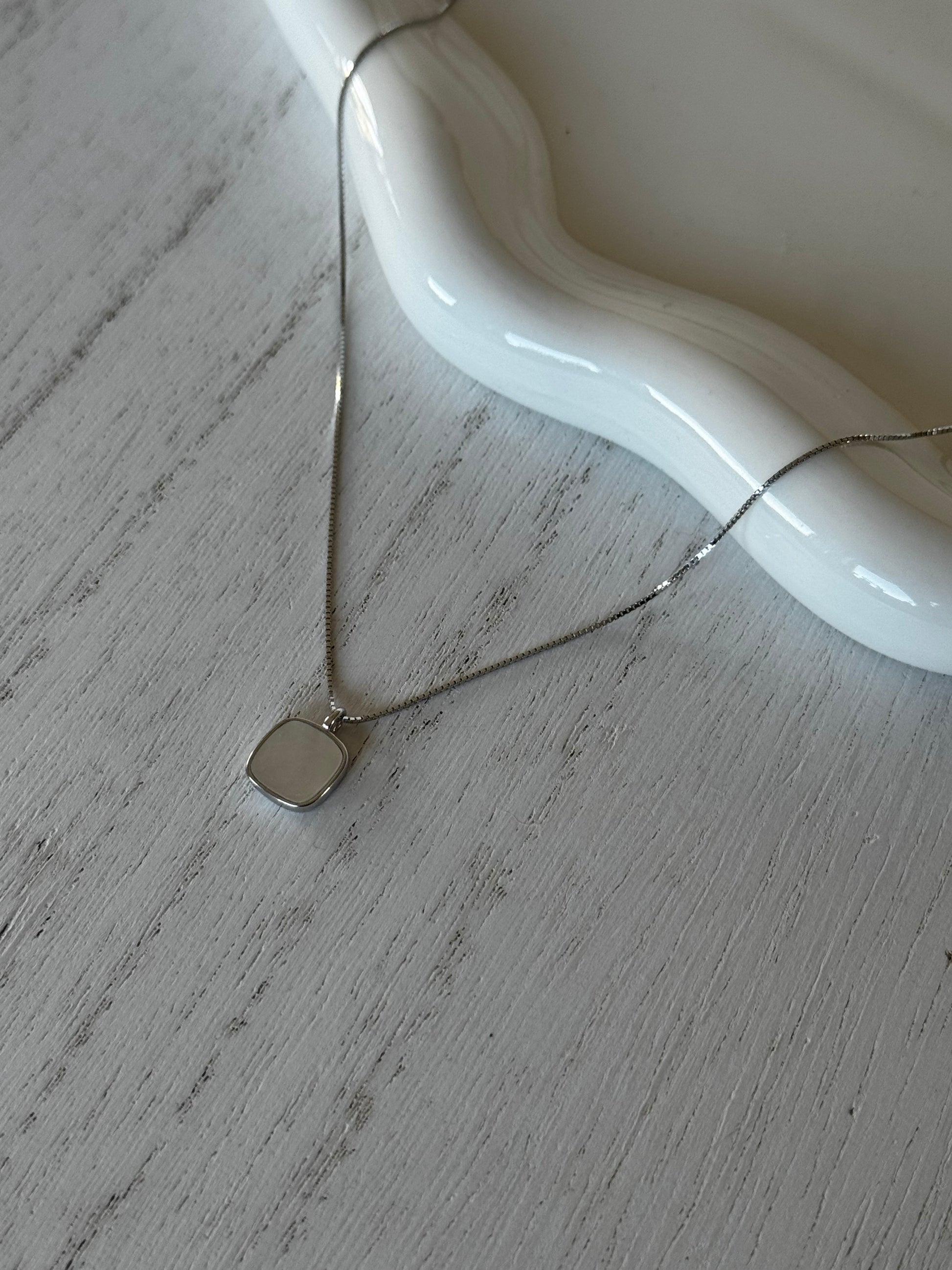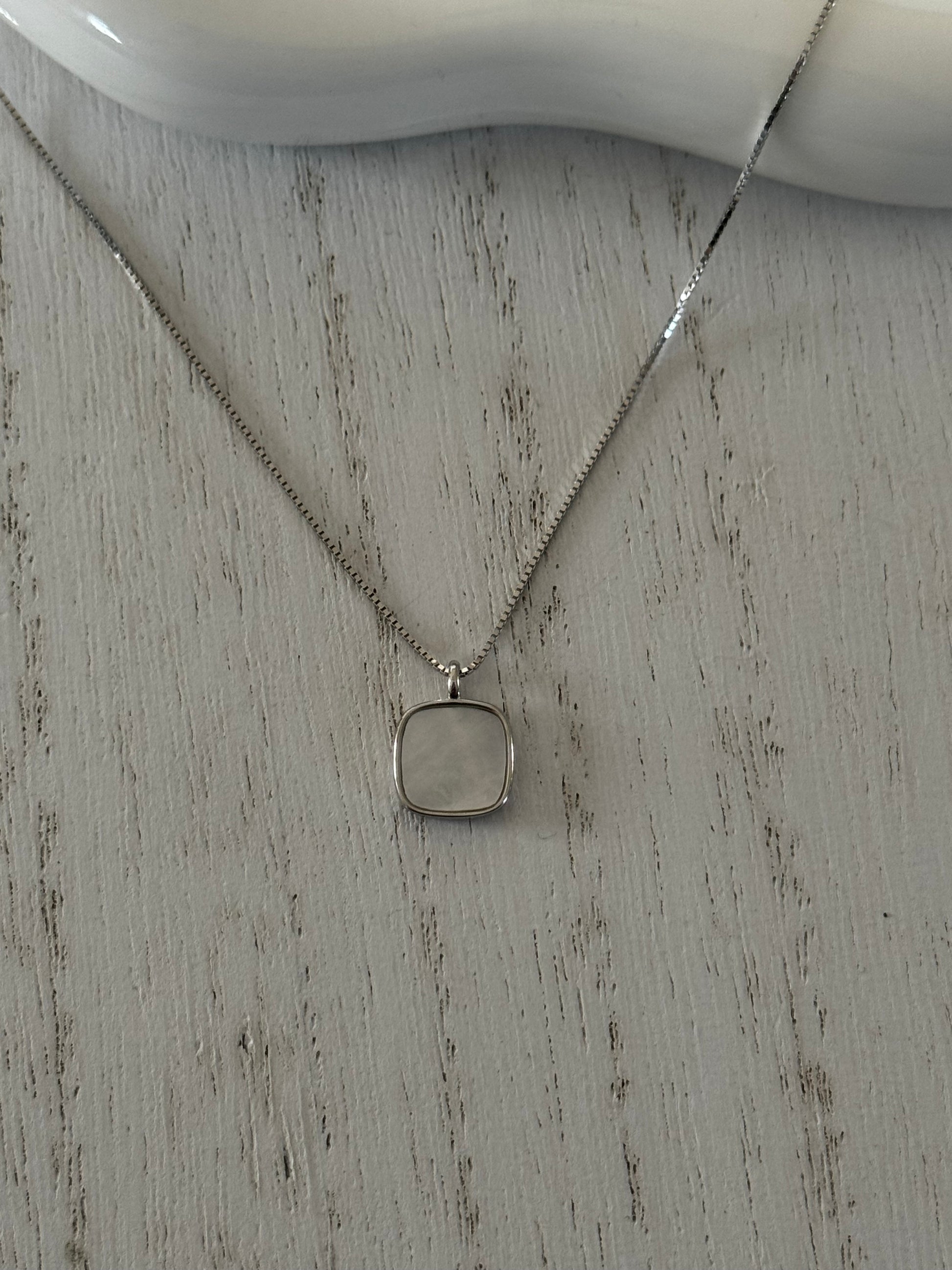 One showcases a radiant rounded-square pendant set with a pristine white stone, symbolizing purity and grace.