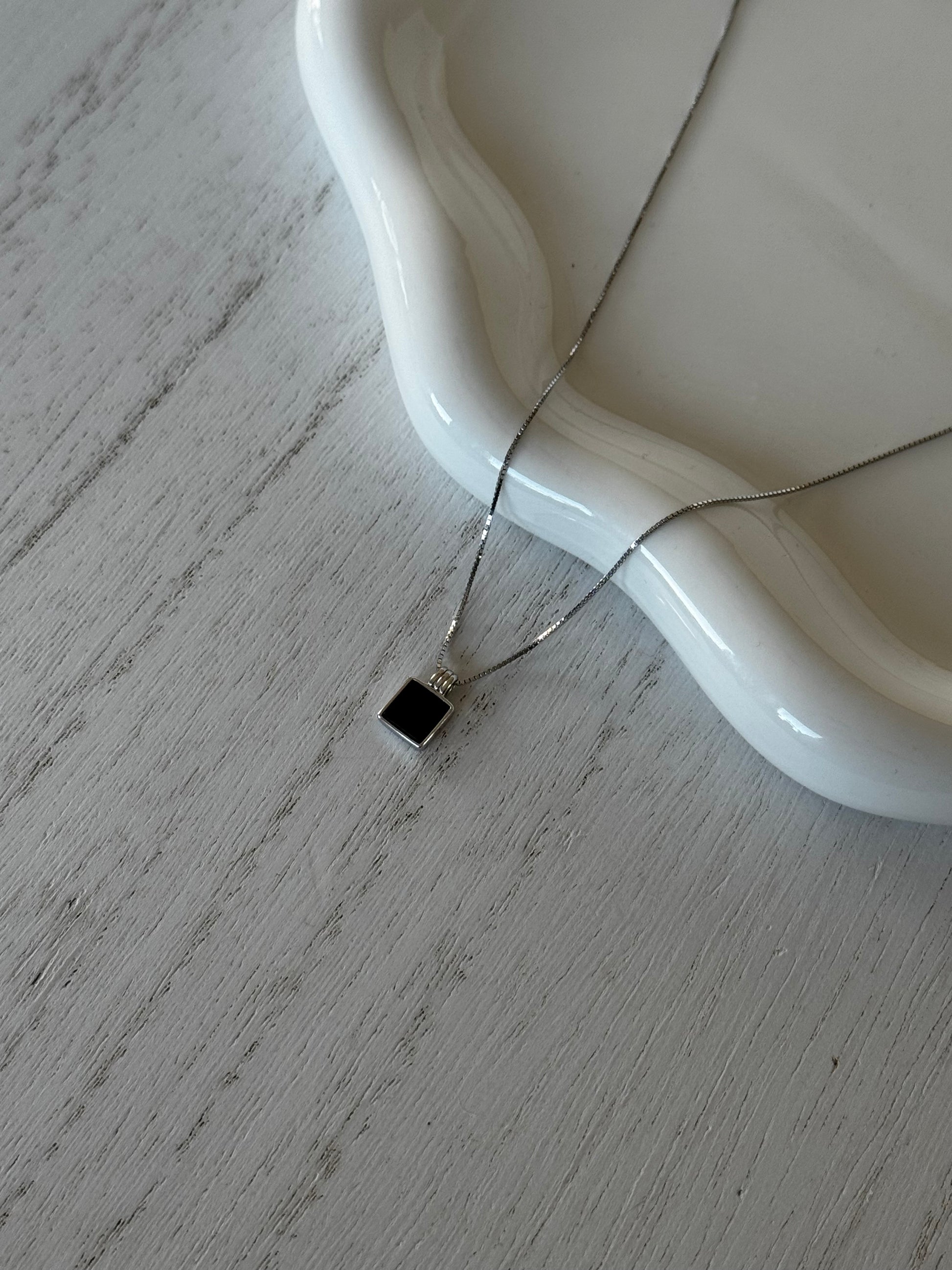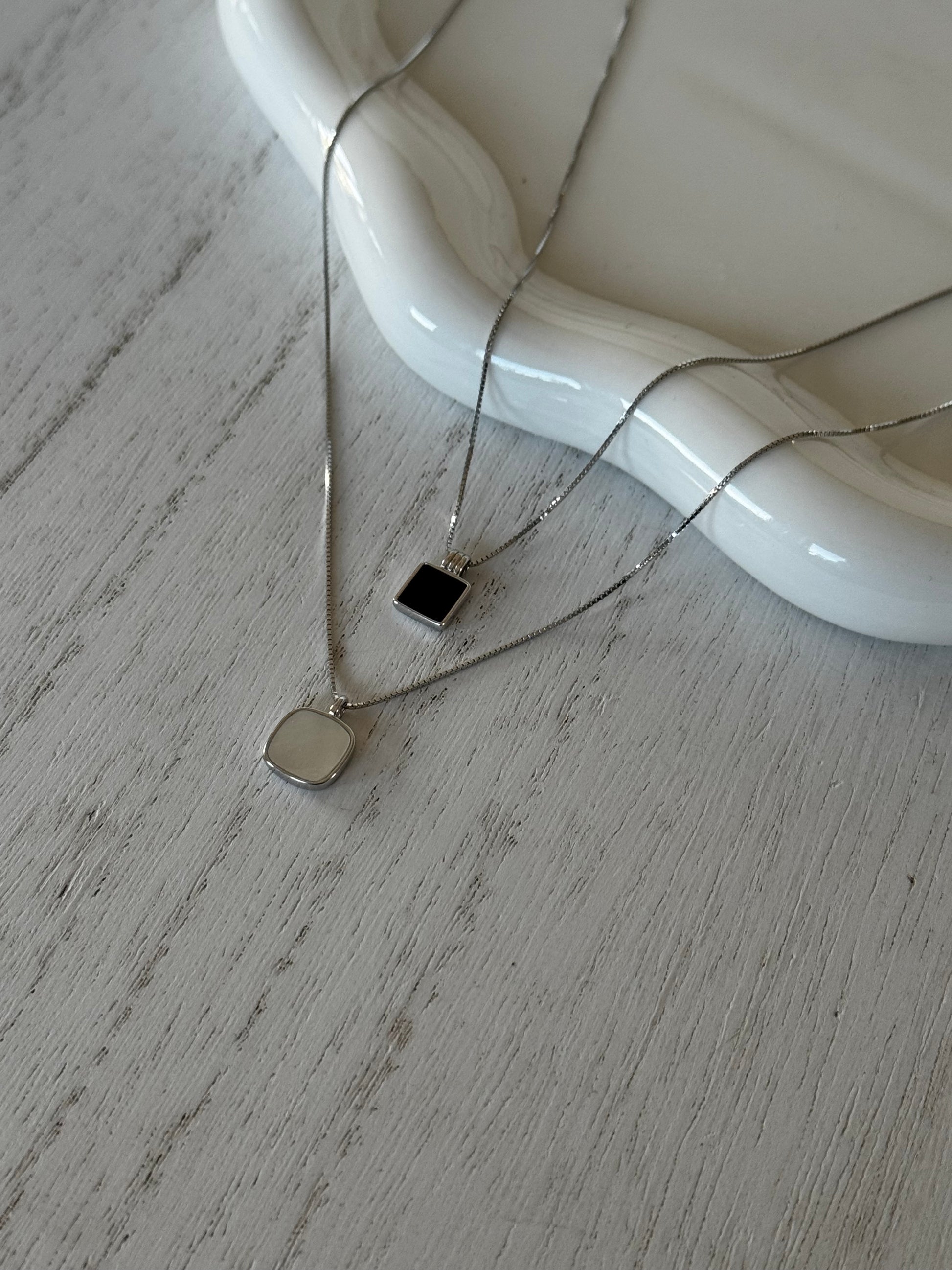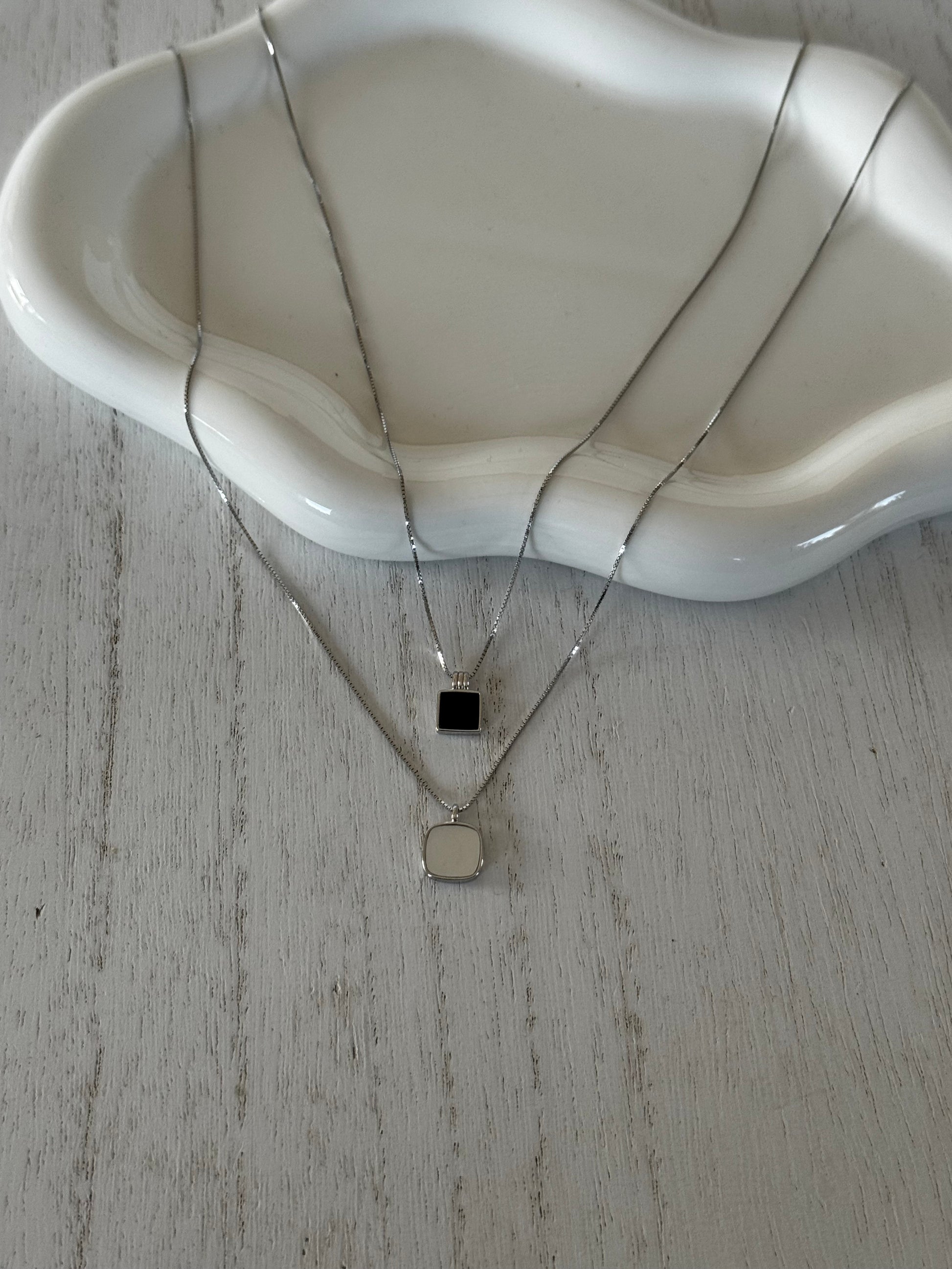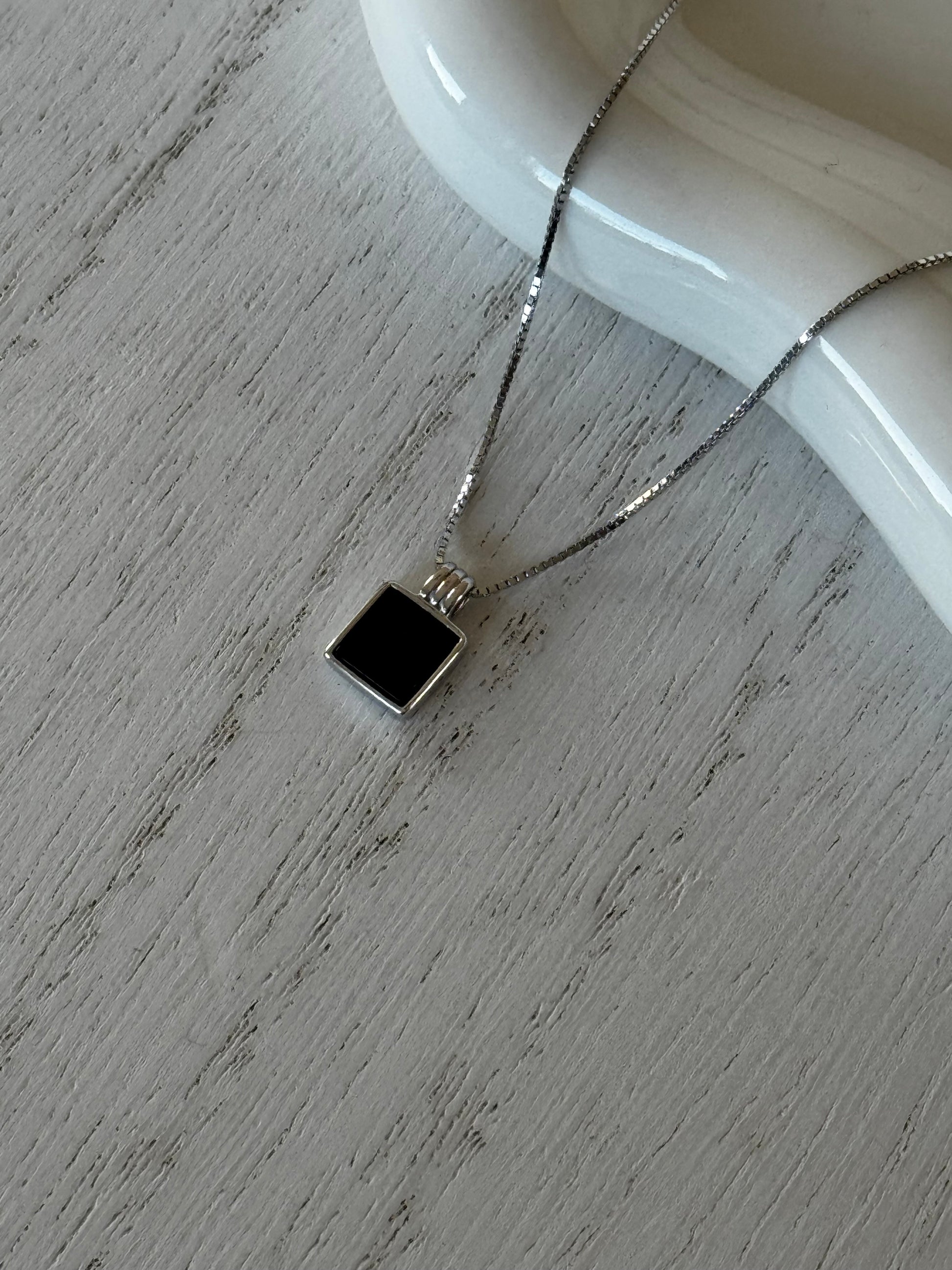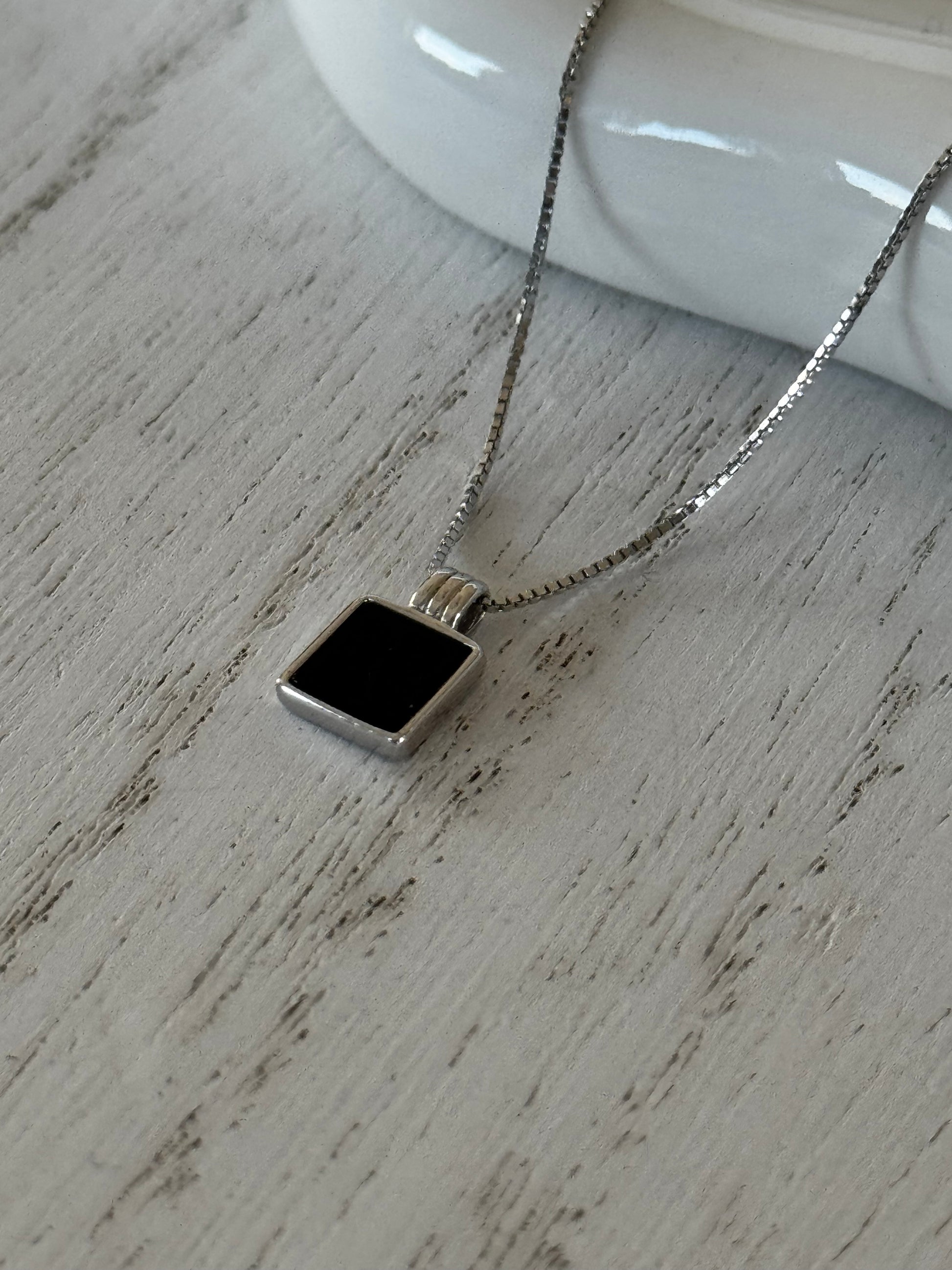 The other features a bold square pendant anchored by a deep black stone, representing strength and sophistication.