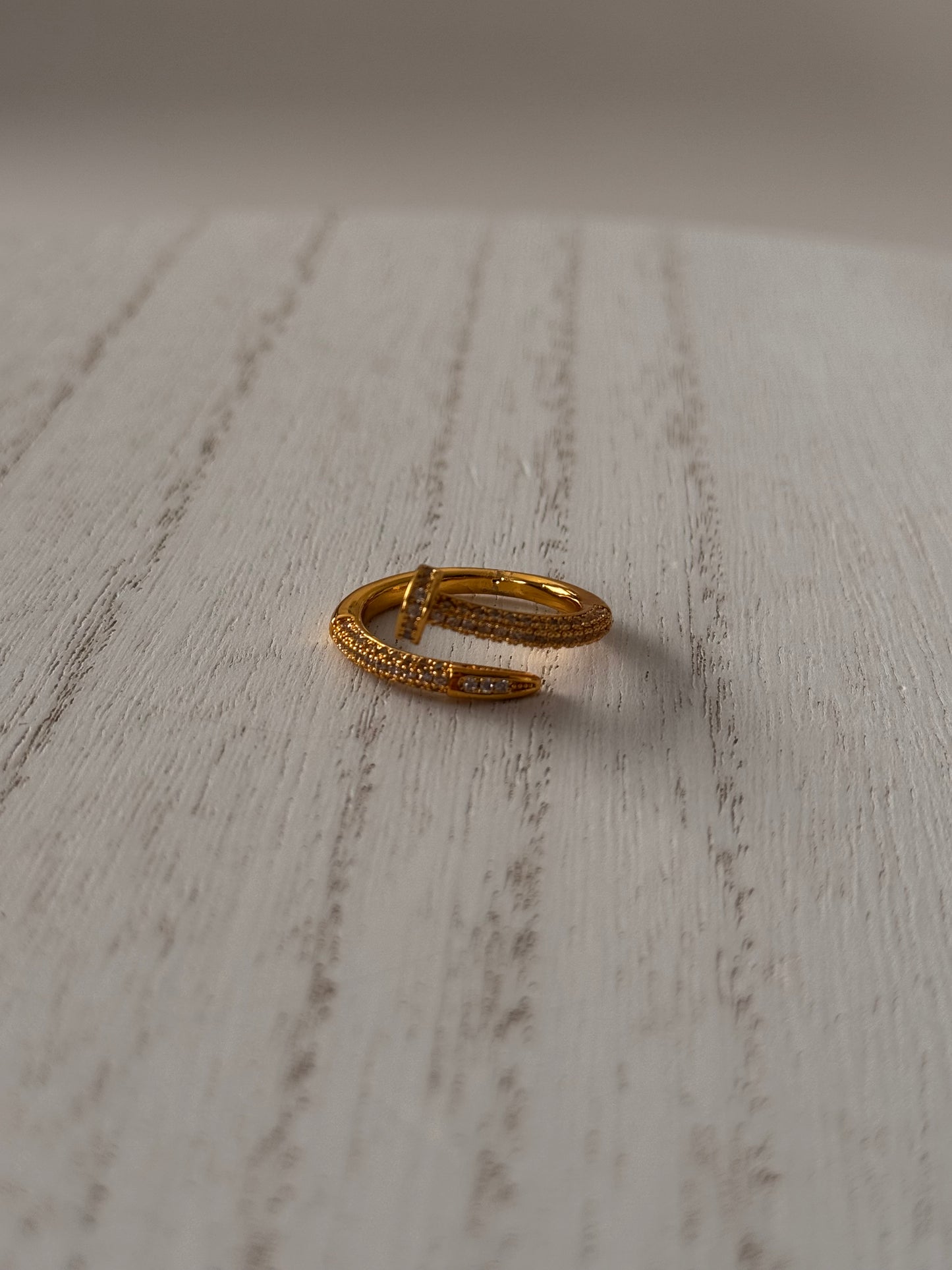 Vera, a striking blend of modern flair, designed for the woman who dares to be different. Shaped like a sparkling nail, it’s an unexpected yet refined statement piece. Half adorned with a brilliant dusting of sparkling zircons, the design captures light with every movement. Wear it to make a statement that’s both bold and beautifully subtle, and let your hands speak volumes in style. Everybody will love Vera!